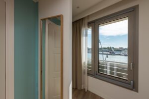La scelta dei serramenti è stata essenziale per fornire agli ospiti un’esperienza immersiva: nelle camere, attraverso le ampie vetrate si fa proprio un panorama suggestivo. L’impiego dei serramenti Fossati in alluminio della serie Metropolis, dalle elevate prestazioni, garantisce la migliore coibentazione e insonorizzazione e asseconda l’evoluzione del ruolo di porte e finestre, sempre più intese come elementi di arredo estetico e funzionale che contribuiscono all’unicità di un ambiente. Oggi architetti e designer hanno a disposizione una moltitudine di soluzioni innovative, che permettono loro di progettare le porte, le finestre e l’ambiente in cui esse verranno installate, con la consapevolezza che esistono strategie adatte a ogni progetto.