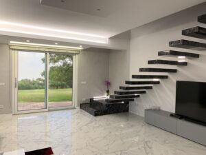 L’intervento è stato caratterizzato dall’inserimento di diverse portefinestre che esaltano la bellezza degli esterni, da una ampia finestra alzante scorrevole e da una finestra panoramica dalla forma orizzontale che sottolinea gli ampi spazi della zona living.